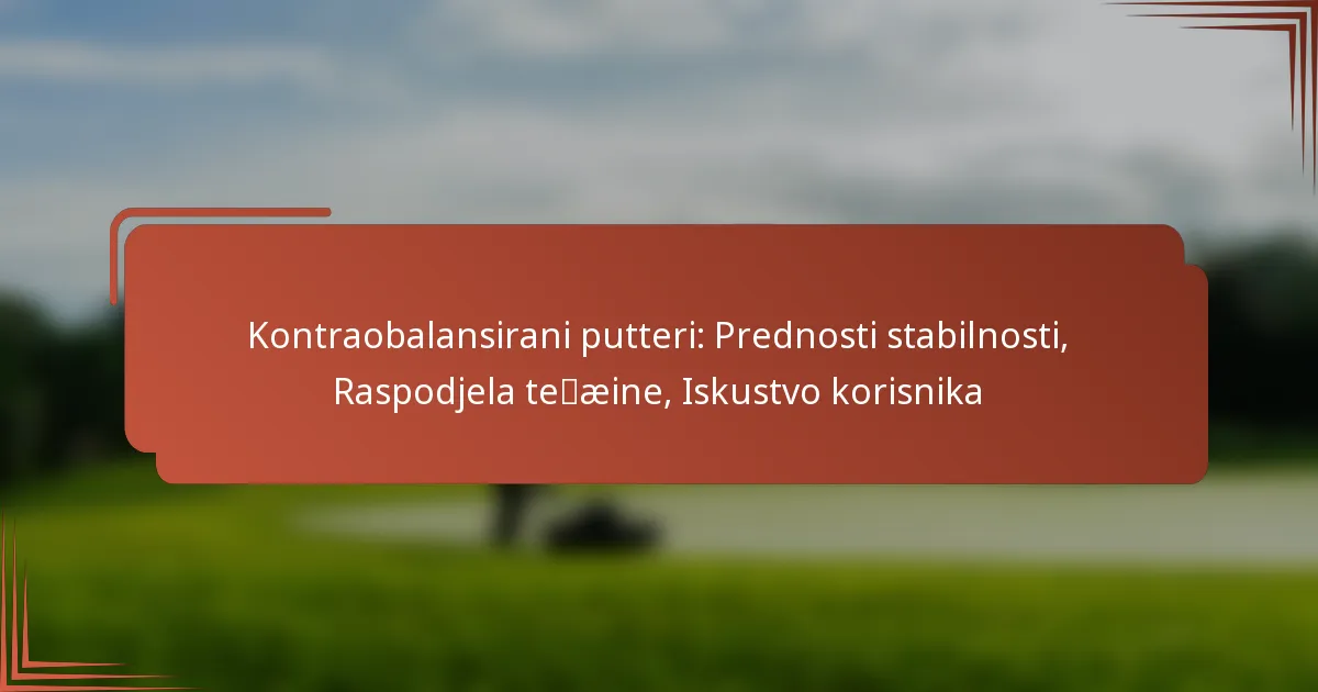 Kontraobalansirani putteri: Prednosti stabilnosti, Raspodjela težine, Iskustvo korisnika