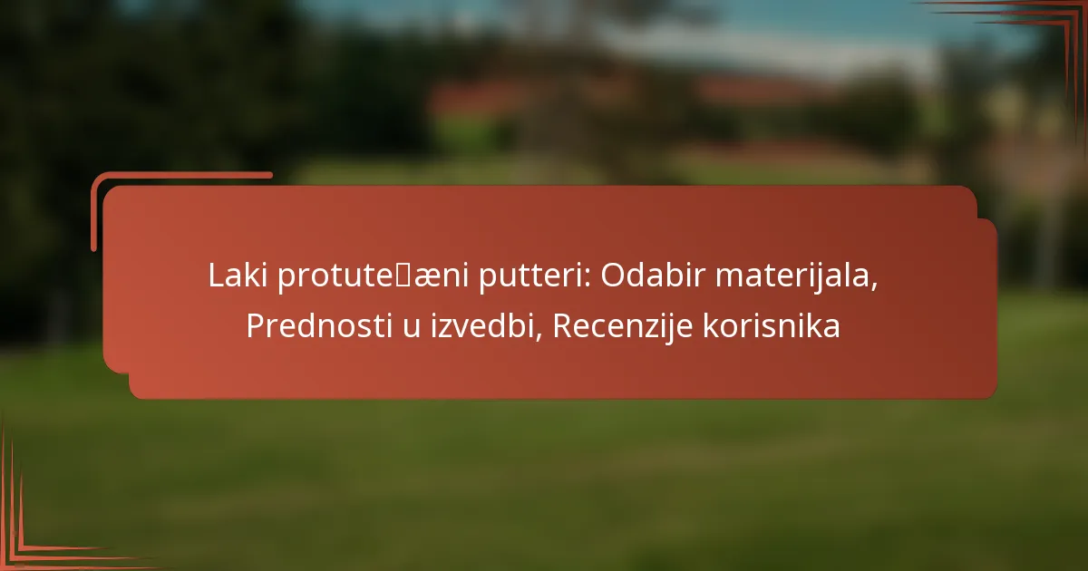 Laki protutežni putteri: Odabir materijala, Prednosti u izvedbi, Recenzije korisnika